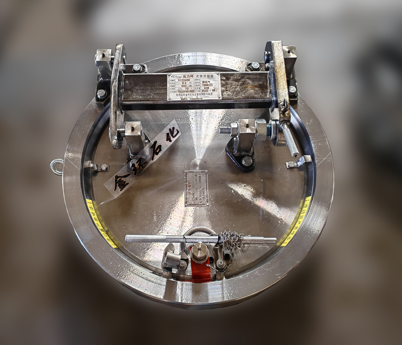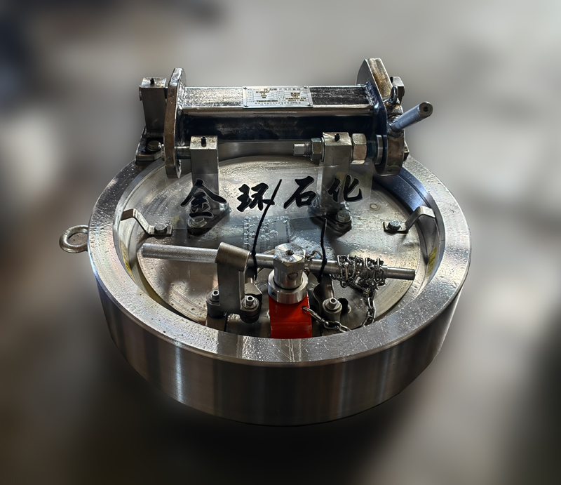 快開盲板是用于壓力管道或壓力容器的圓形開口上的一種機械裝置。一般由筒體法蘭、頭蓋、勾圈或卡箍、密封圈、安全聯(lián)鎖機構(gòu)、開閉機構(gòu)、轉(zhuǎn)臂及短節(jié)(需要時)等部件構(gòu)成。